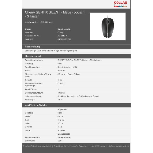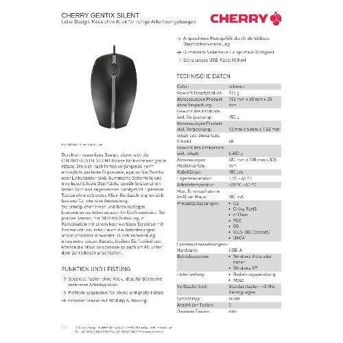 Jetzt anmeldenProduktinformationen "Cherry GENTIX SILENT - Maus - optisch - 3 Tasten"