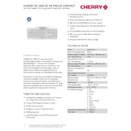 - Dauerhafte Zuverlässigkeit. Zeitlose Eleganz. Intelligentes Konzept. CHERRY KC 1000 SC vereint die Vorteile einer klassischen CHERRY Office-Tastatur mit den sicherheitstechnischen Anforderungen an ein Security-Keyboard.