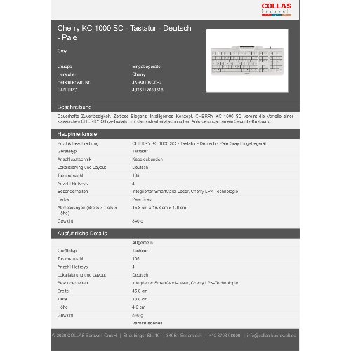 Jetzt anmeldenProduktinformationen "Cherry KC 1000 SC - Tastatur - Deutsch - Pale"