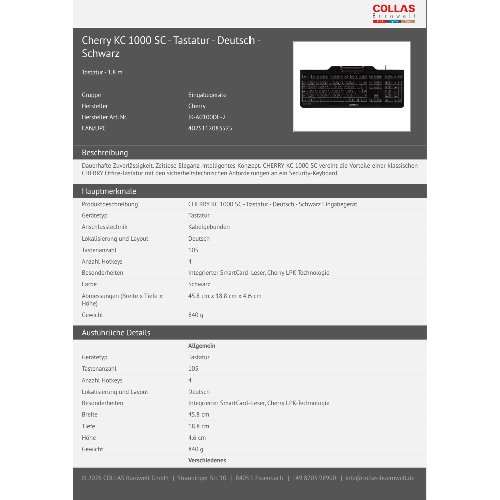 Jetzt anmeldenProduktinformationen "Cherry KC 1000 SC - Tastatur - Deutsch - Schwarz"