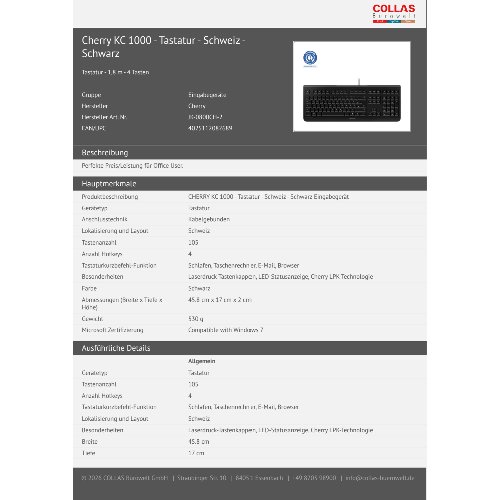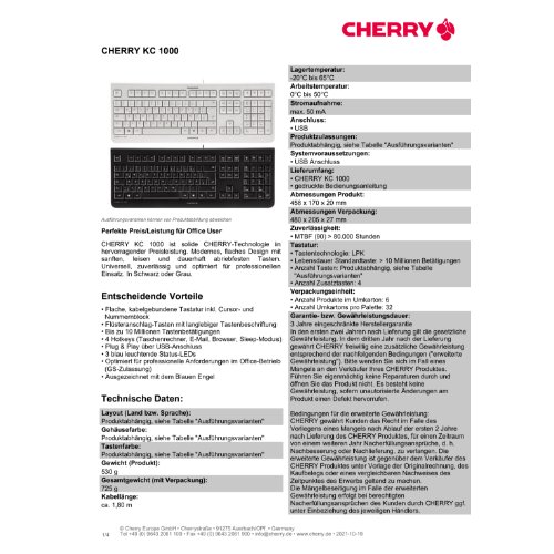 Jetzt anmeldenProduktinformationen "Cherry KC 1000 - Tastatur - Schweiz - Schwarz"