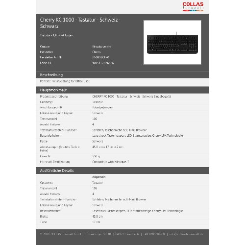 Jetzt anmeldenProduktinformationen "Cherry KC 1000 - Tastatur - Schweiz - Schwarz"