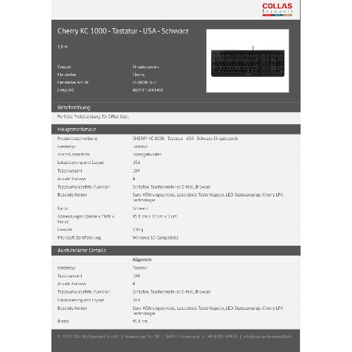 Jetzt anmeldenProduktinformationen "Cherry KC 1000 - Tastatur - USA - Schwarz"