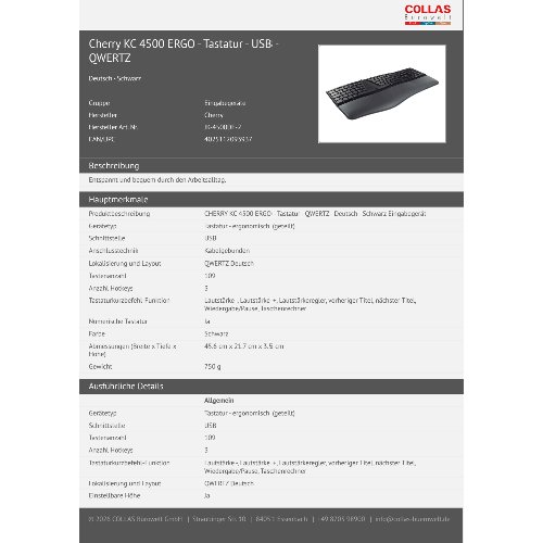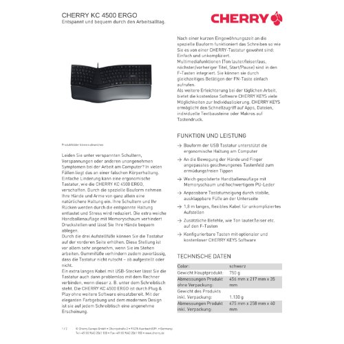 Jetzt anmeldenProduktinformationen "Cherry KC 4500 ERGO - Tastatur - USB - QWERTZ"