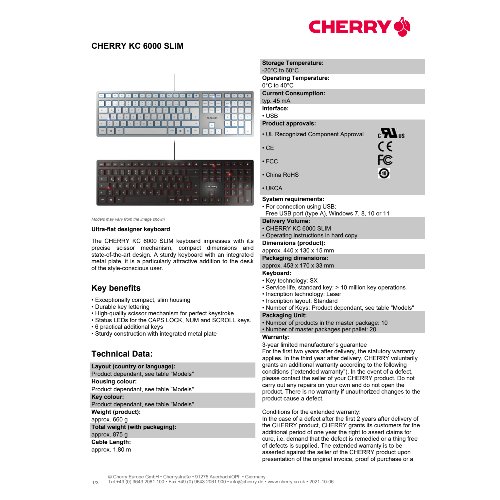 Jetzt anmeldenProduktinformationen "Cherry KC 6000 SLIM - Tastatur - USB - Englisch"
