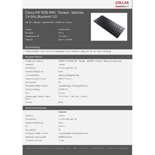 Cherry KW 9200 MINI - Tastatur - kabellos - 2.4 GHz, Bluetooth 5.0