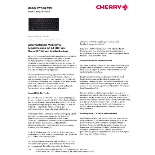 Jetzt anmeldenProduktinformationen "Cherry KW 9200 MINI - Tastatur - kabellos - 2.4 GHz, Bluetooth 5.0"