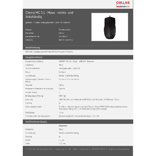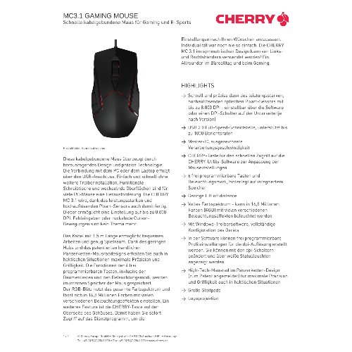 Jetzt anmeldenProduktinformationen "Cherry MC 3.1 - Maus - rechts- und linkshändig"