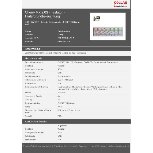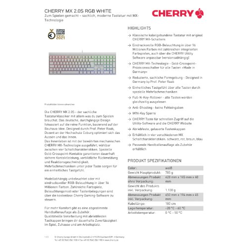 Jetzt anmeldenProduktinformationen "Cherry MX 2.0S - Tastatur - Hintergrundbeleuchtung"