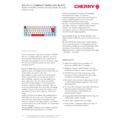 Jetzt anmeldenProduktinformationen "Cherry MX MX-LP 2.1 - Tastatur - kompakt - Hintergrundbeleuchtung"