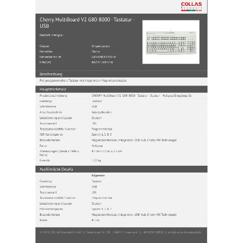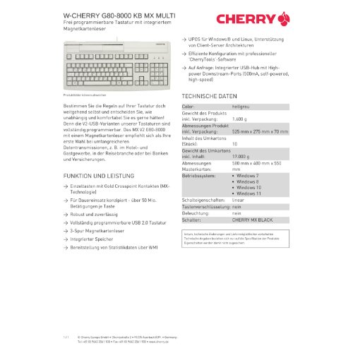Jetzt anmeldenProduktinformationen "Cherry MultiBoard V2 G80-8000 - Tastatur - USB"