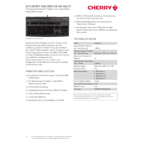 Jetzt anmeldenProduktinformationen "Cherry MultiBoard V2 G80-8000 - Tastatur - USB"