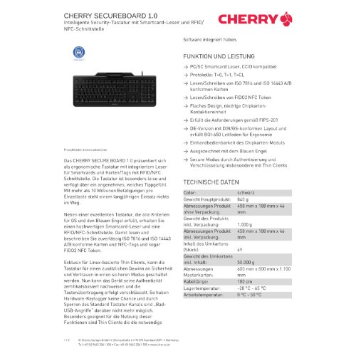 Jetzt anmeldenProduktinformationen "Cherry SECURE BOARD 1.0 - Tastatur - mit NFC"