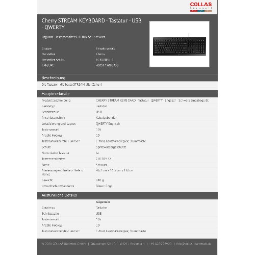 Jetzt anmeldenProduktinformationen "Cherry STREAM KEYBOARD - Tastatur - USB - QWERTY"