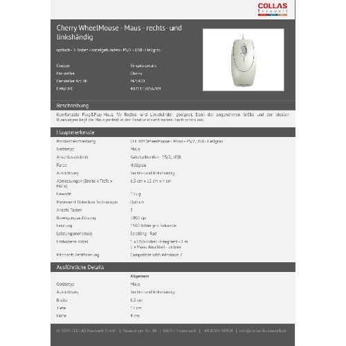 Jetzt anmeldenProduktinformationen "Cherry WheelMouse - Maus - rechts- und linkshändig"