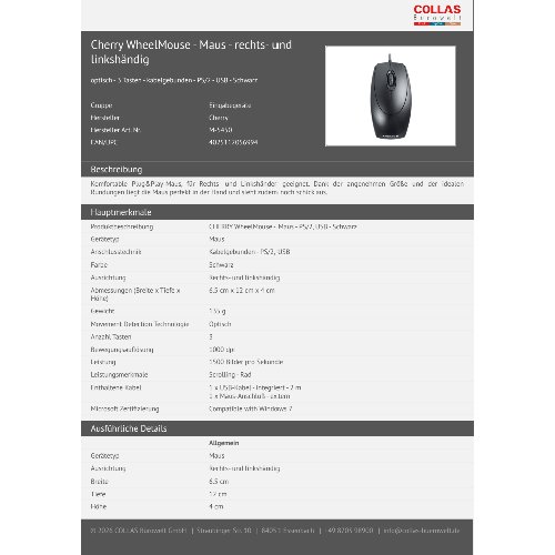 Jetzt anmeldenProduktinformationen "Cherry WheelMouse - Maus - rechts- und linkshändig"