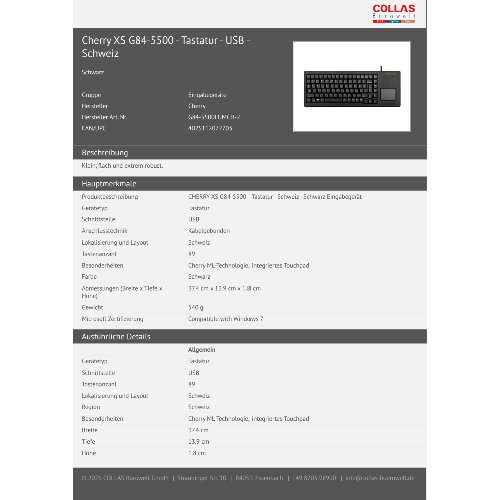 Jetzt anmeldenProduktinformationen "Cherry XS G84-5500 - Tastatur - USB - Schweiz"