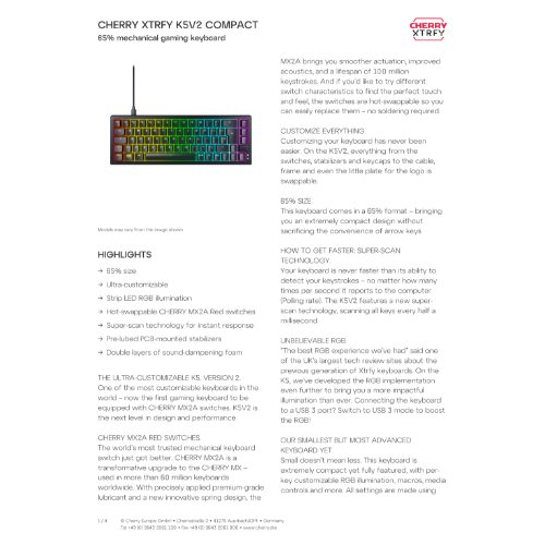 Jetzt anmeldenProduktinformationen "Cherry XTRFY K5V2 - Tastatur - 65% - compact"