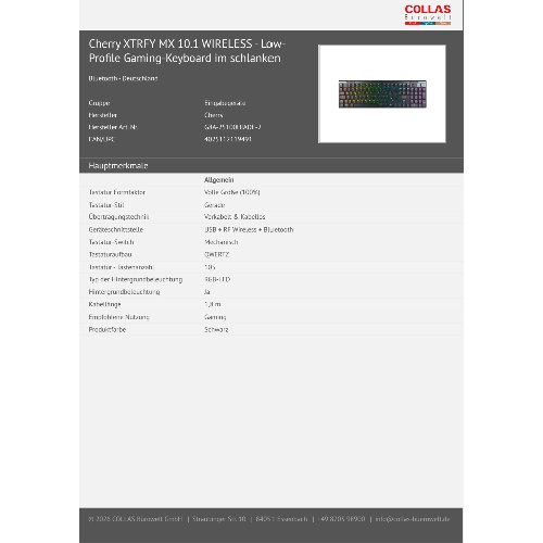 Jetzt anmeldenProduktinformationen "Cherry XTRFY MX 10.1 Wireless - Tastatur - QWERTZ"