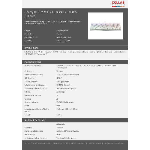 Jetzt anmeldenProduktinformationen "Cherry XTRFY MX 3.1 - Tastatur - 100% - full size"