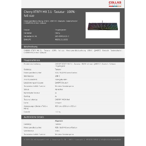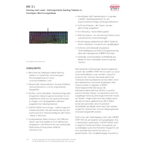 Jetzt anmeldenProduktinformationen "Cherry XTRFY MX 3.1 - Tastatur - 100% - full size"