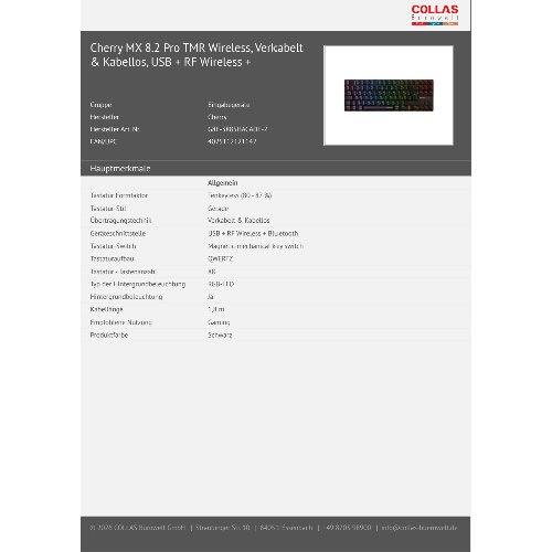 Jetzt anmeldenProduktinformationen "Cherry XTRFY MX 8.2 Pro TMR Wireless G8E-3885"