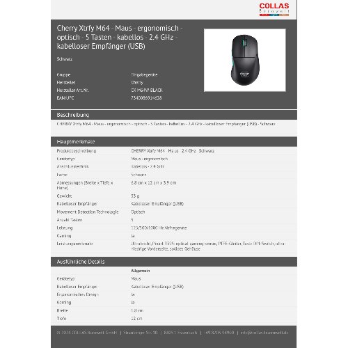 Jetzt anmeldenProduktinformationen "Cherry Xtrfy M64 - Maus - ergonomisch - optisch - 5 Tasten - kabellos - 2.4 GHz - kabelloser Empfänger (USB)"