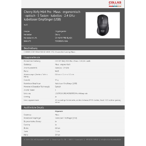 Jetzt anmeldenProduktinformationen "Cherry Xtrfy M64 Pro - Maus - ergonomisch - optisch - 5 Tasten - kabellos - 2.4 GHz - kabelloser Empfänger (USB)"