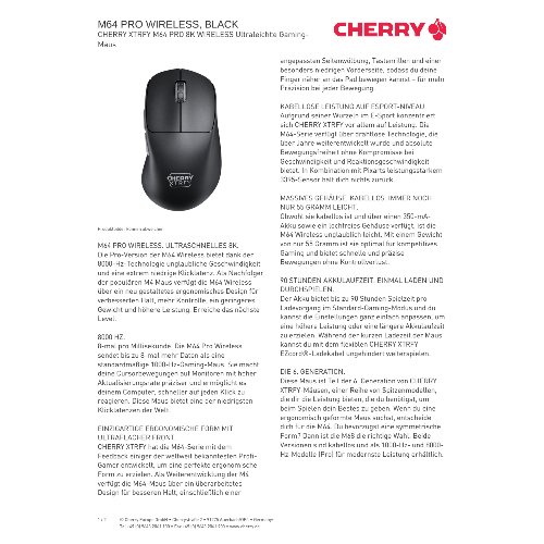 - CHERRY XTRFY M64 PRO 8K WIRELESS Ultraleichte Gaming-Maus.