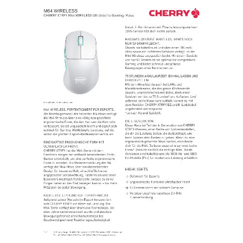 Jetzt anmeldenProduktinformationen "Cherry Xtrfy M64 Wireless white Wireless Maus - Maus - 26.000 dpi"