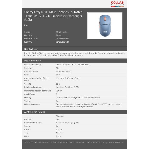 Jetzt anmeldenProduktinformationen "Cherry Xtrfy M68 - Maus - optisch - 5 Tasten - kabellos - 2.4 GHz - kabelloser Empfänger (USB)"