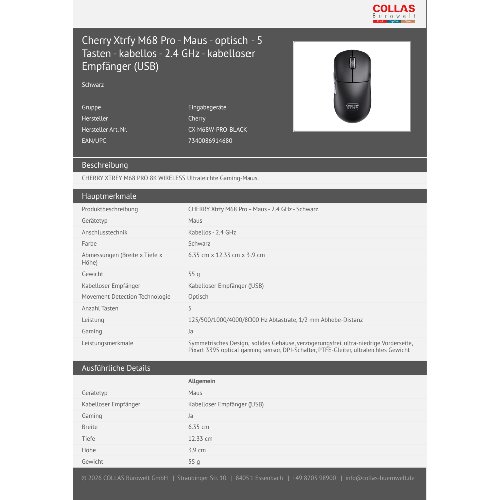 Jetzt anmeldenProduktinformationen "Cherry Xtrfy M68 Pro - Maus - optisch - 5 Tasten - kabellos - 2.4 GHz - kabelloser Empfänger (USB)"