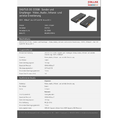 Jetzt anmeldenProduktinformationen "DIGITUS 4K HDBaseT HDMI Extender Set, 150 m"