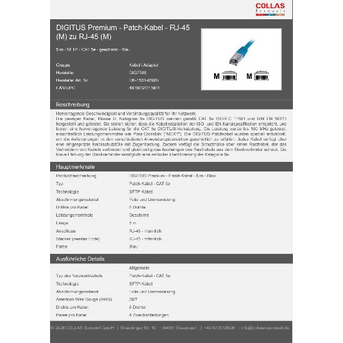 Jetzt anmeldenProduktinformationen "DIGITUS CAT 5e SF/UTP Patchkabel"