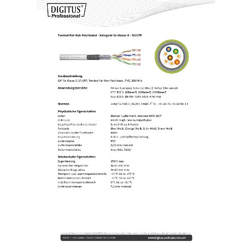 Jetzt anmeldenProduktinformationen "DIGITUS CAT 5e SF/UTP Twisted Pair Roh-Patchkabel"
