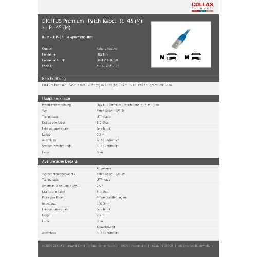 Jetzt anmeldenProduktinformationen "DIGITUS CAT 5e U/UTP Patchkabel"
