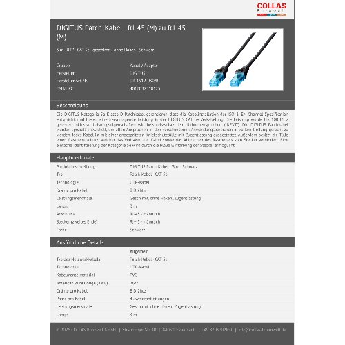 Jetzt anmeldenProduktinformationen "DIGITUS CAT 5e U/UTP Patchkabel"