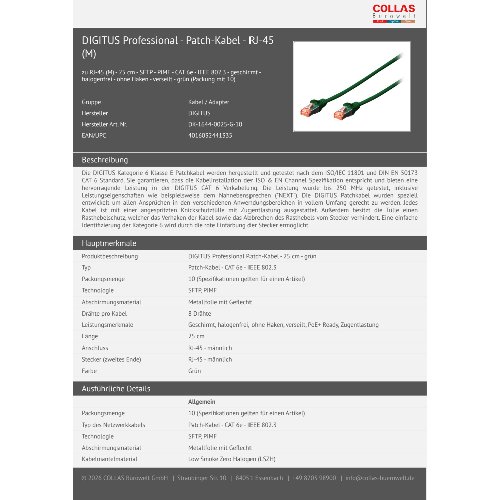 Jetzt anmeldenProduktinformationen "DIGITUS CAT 6 S/FTP Patchkabel, 10 Stück"