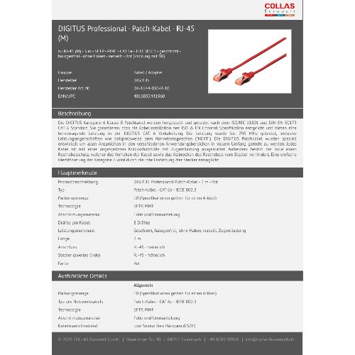 Jetzt anmeldenProduktinformationen "DIGITUS CAT 6 S/FTP Patchkabel, 10 Stück"