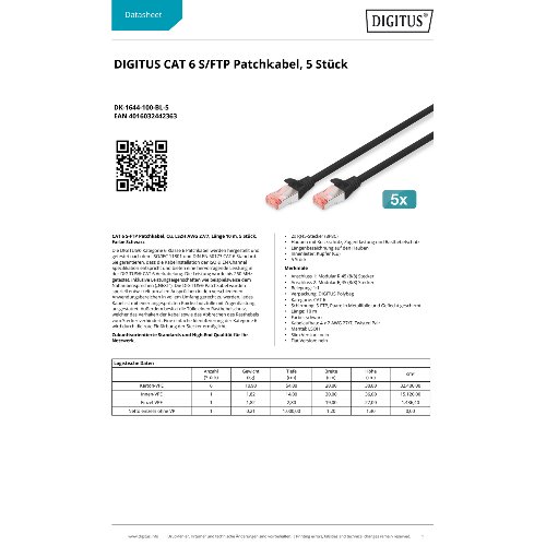Jetzt anmeldenProduktinformationen "DIGITUS CAT 6 S/FTP Patchkabel, 5 Stück"