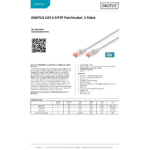 Jetzt anmeldenProduktinformationen "DIGITUS CAT 6 S/FTP Patchkabel, 5 Stück"