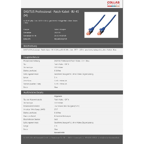 Jetzt anmeldenProduktinformationen "DIGITUS CAT 6 S/FTP Patchkabel"