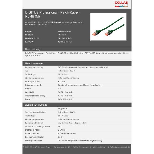 Jetzt anmeldenProduktinformationen "DIGITUS CAT 6 S/FTP Patchkabel"