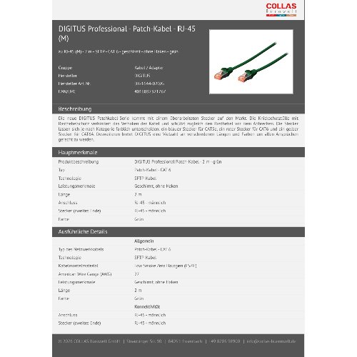 Jetzt anmeldenProduktinformationen "DIGITUS CAT 6 S/FTP Patchkabel"