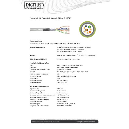 Jetzt anmeldenProduktinformationen "DIGITUS CAT 6 SF/UTP Twisted Pair Roh-Patchkabel"