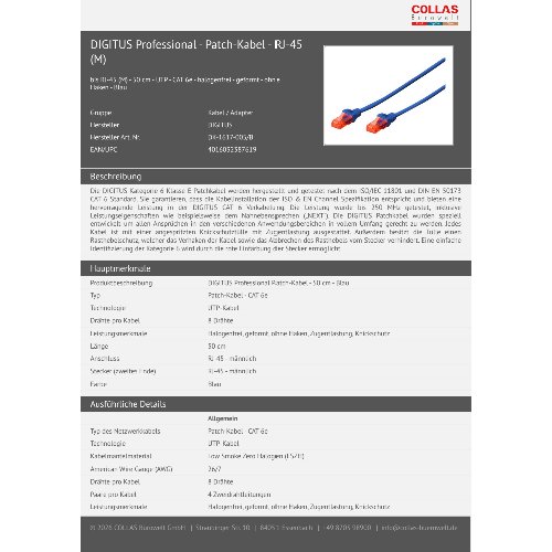 Jetzt anmeldenProduktinformationen "DIGITUS CAT 6 U/UTP Patchkabel - LSZH"