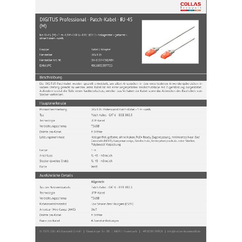Produktinformationen "DIGITUS CAT 6 U/UTP Patchkabel - LSZH"