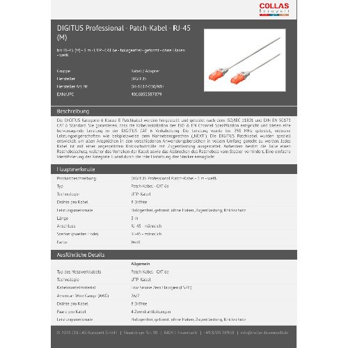 Jetzt anmeldenProduktinformationen "DIGITUS CAT 6 U/UTP Patchkabel - LSZH"