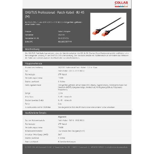Jetzt anmeldenProduktinformationen "DIGITUS CAT 6 U/UTP Patchkabel - LSZH"