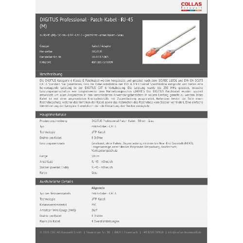 Jetzt anmeldenProduktinformationen "DIGITUS CAT 6 U/UTP Patchkabel"